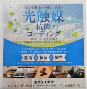 当塾では、コロナウイルス感染症対策として、「光触媒」の処理を施しました。光触媒とは太陽や蛍光灯などの光が当たると、その表面で強力な酸化力が生まれ、接触してくる有機化合物や細菌などの有害物質を除去することができる環境浄化材料です。特にドアノブやスイッチ類などに行い、それ以外でも日々アルコール消毒を行っております。